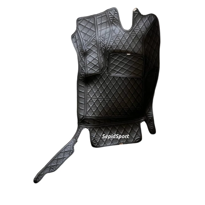 کفپوش چرمی، محصولی باکیفیت و شیک است که به طور خاص برای این خودرو طراحی شده است. این کفپوش از چرم صنعتی ضدخش و فوم صنعتی EVA با آستر نانو ساخته شده و در رنگهای مشکی و مارون موجود است. الگوی دقیق آن به طور کامل کف صندوق خودرو را میپوشاند و ظاهری یکپارچه را ایجاد میکند. قابلیت شستشو، یکی از مزایای برجسته این محصول است که به شما امکان تمیز کردن و حفظ بهداشت داخل خودرو را میدهد. با انتخاب رنگ مورد علاقه خود، ظاهری جذاب و هماهنگ با سلیقهتان به داخل خودرو شما میبخشد. رنگ نخ گلدوزی در این محصول میتواند مشکی، قرمز، سفید یا مارون باشد و زمینه کار معمولاً مشکی است.