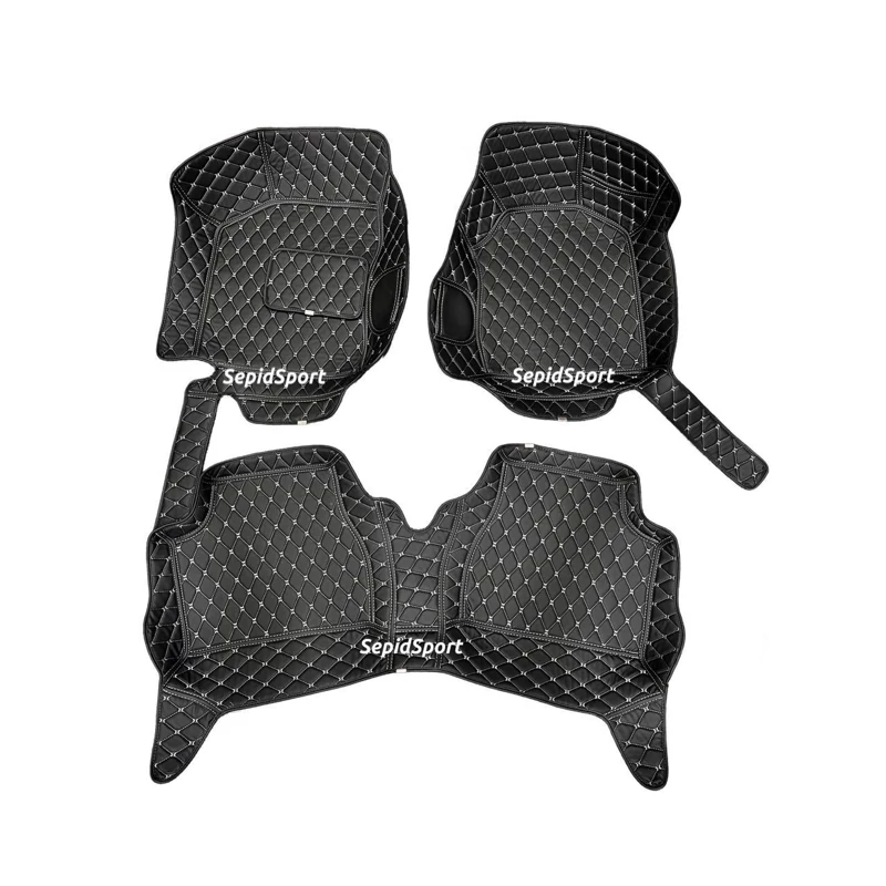 کفپوش چرمی گلدوزی، محصولی باکیفیت و شیک است که به طور خاص برای این خودرو طراحی شده است. این کفپوش از چرم صنعتی ضدخش و فوم صنعتی EVA با آستر نانو ساخته شده و در رنگهای مشکی و مارون موجود است. الگوی دقیق آن به طور کامل کف خودرو را میپوشاند و ظاهری یکپارشی را ایجاد میکند. قابلیت شستشو، یکی از مزایای برجسته این محصول است که به شما امکان تمیز کردن و حفظ بهداشت داخل خودرو را میدهد. با انتخاب رنگ مورد علاقه خود، ظاهری جذاب و هماهنگ با سلیقهتان به داخل خودرو شما میبخشد. رنگ نخ گلدوزی در این محصول میتواند مشکی، قرمز، سفید یا کرم باشد و زمینه کار معمولاً مشکی است.