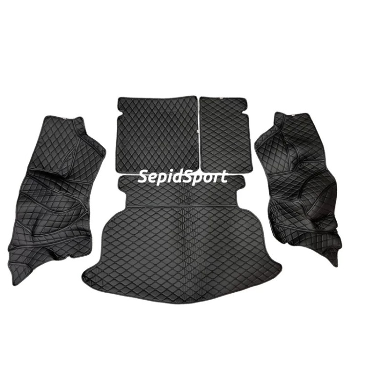 کفپوش چرمی، محصولی باکیفیت و شیک است که به طور خاص برای این خودرو طراحی شده است. این کفپوش از چرم صنعتی ضدخش و فوم صنعتی EVA با آستر نانو ساخته شده و در رنگهای مشکی و مارون موجود است. الگوی دقیق آن به طور کامل کف صندوق خودرو را میپوشاند و ظاهری یکپارچه را ایجاد میکند. قابلیت شستشو، یکی از مزایای برجسته این محصول است که به شما امکان تمیز کردن و حفظ بهداشت داخل خودرو را میدهد. با انتخاب رنگ مورد علاقه خود، ظاهری جذاب و هماهنگ با سلیقهتان به داخل خودرو شما میبخشد. رنگ نخ گلدوزی در این محصول میتواند مشکی، قرمز، سفید یا مارون باشد و زمینه کار معمولاً مشکی است.