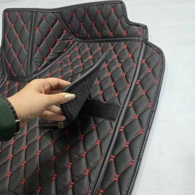 کفپوش چرمی، محصولی باکیفیت و شیک است که به طور خاص برای این خودرو طراحی شده است. این کفپوش از چرم صنعتی ضدخش و فوم صنعتی EVA با آستر نانو ساخته شده و در رنگهای مشکی و مارون موجود است. الگوی دقیق آن به طور کامل کف خودرو را میپوشاند و ظاهری یکپارچه را ایجاد میکند. قابلیت شستشو، یکی از مزایای برجسته این محصول است که به شما امکان تمیز کردن و حفظ بهداشت داخل خودرو را میدهد. با انتخاب رنگ مورد علاقه خود، ظاهری جذاب و هماهنگ با سلیقهتان به داخل خودرو شما میبخشد. رنگ نخ گلدوزی در این محصول میتواند مشکی، قرمز، سفید یا مارون باشد و زمینه کار معمولاً مشکی است.