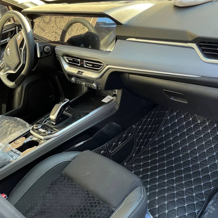 کفپوش چرمی، محصولی باکیفیت و شیک است که به طور خاص برای این خودرو طراحی شده است. این کفپوش از چرم صنعتی ضدخش و فوم صنعتی EVA با آستر نانو ساخته شده و در رنگهای مشکی و مارون موجود است. الگوی دقیق آن به طور کامل کف خودرو را میپوشاند و ظاهری یکپارچه را ایجاد میکند. قابلیت شستشو، یکی از مزایای برجسته این محصول است که به شما امکان تمیز کردن و حفظ بهداشت داخل خودرو را میدهد. با انتخاب رنگ مورد علاقه خود، ظاهری جذاب و هماهنگ با سلیقهتان به داخل خودرو شما میبخشد. رنگ نخ گلدوزی در این محصول میتواند مشکی، قرمز یا مارون باشد و زمینه کار معمولاً مشکی است.